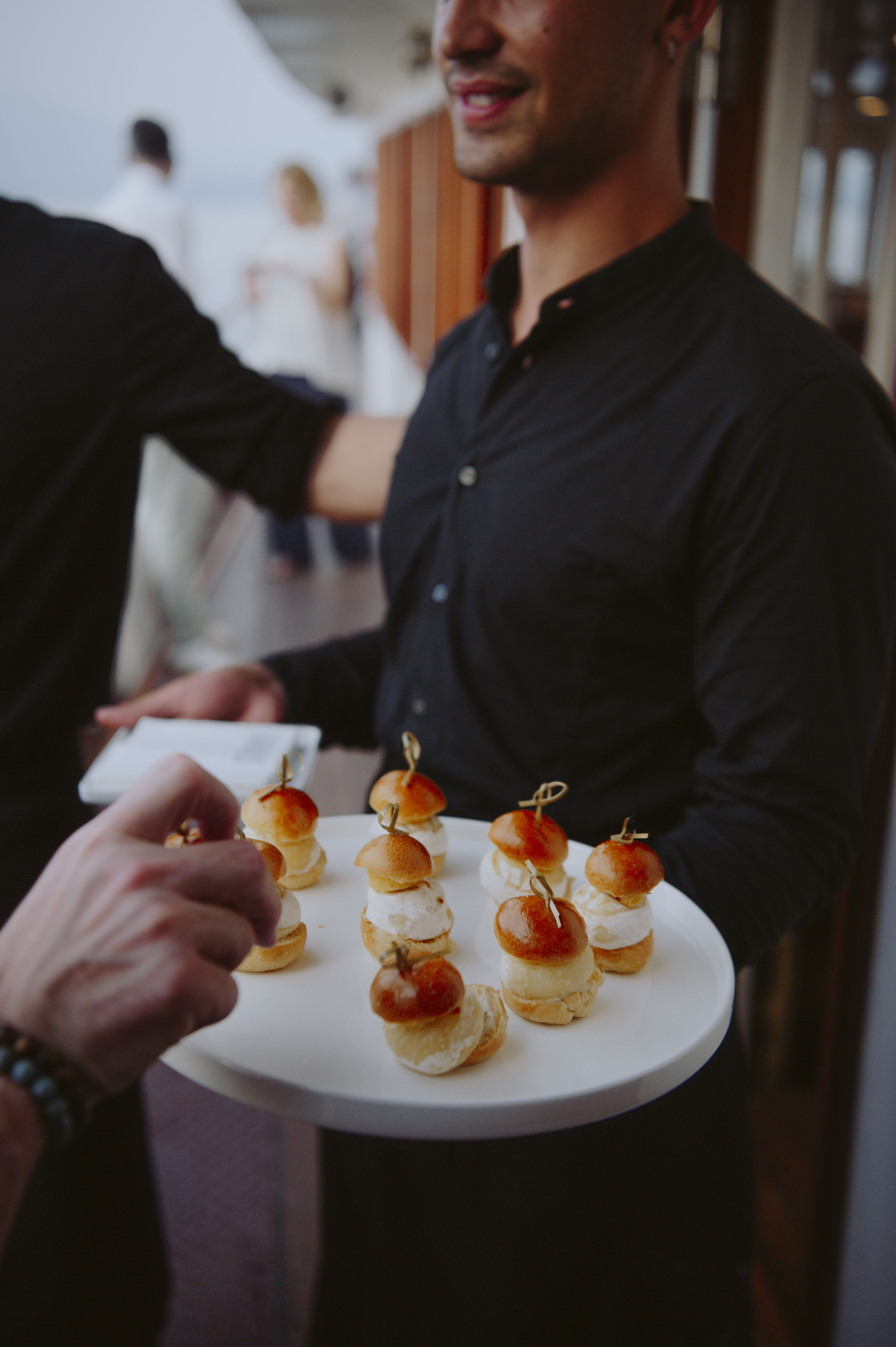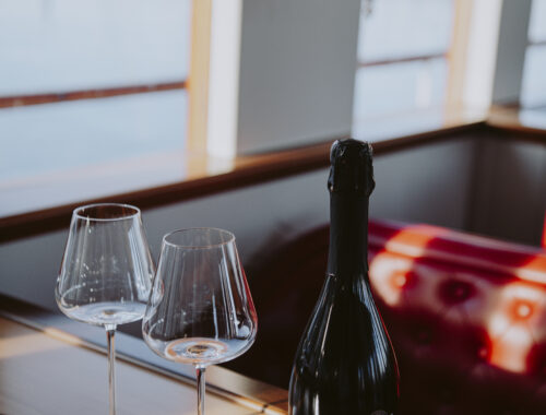 Durante tutta la navigazione i diversi assaggi di vino, proposti dalle cantine presenti, venivano accompagnati da una proposta gastronomica di abbinamenti studiati appositamente per le serate.